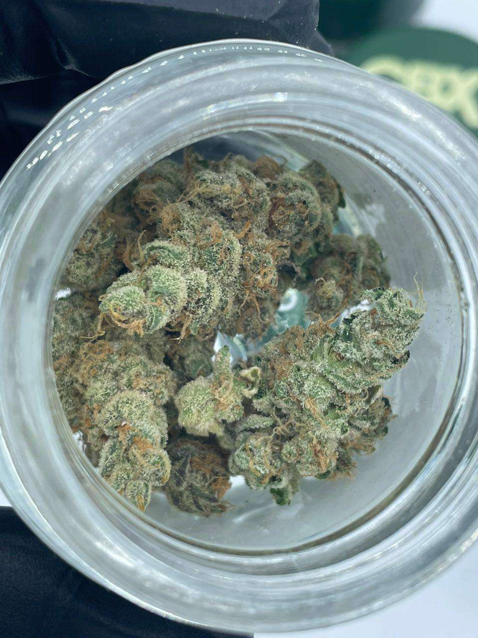 Appearance:Â The nugs are often light green with subtle purple streaks, covered in a thick resin layer and boasting a vibrant display of orange and red hairs.